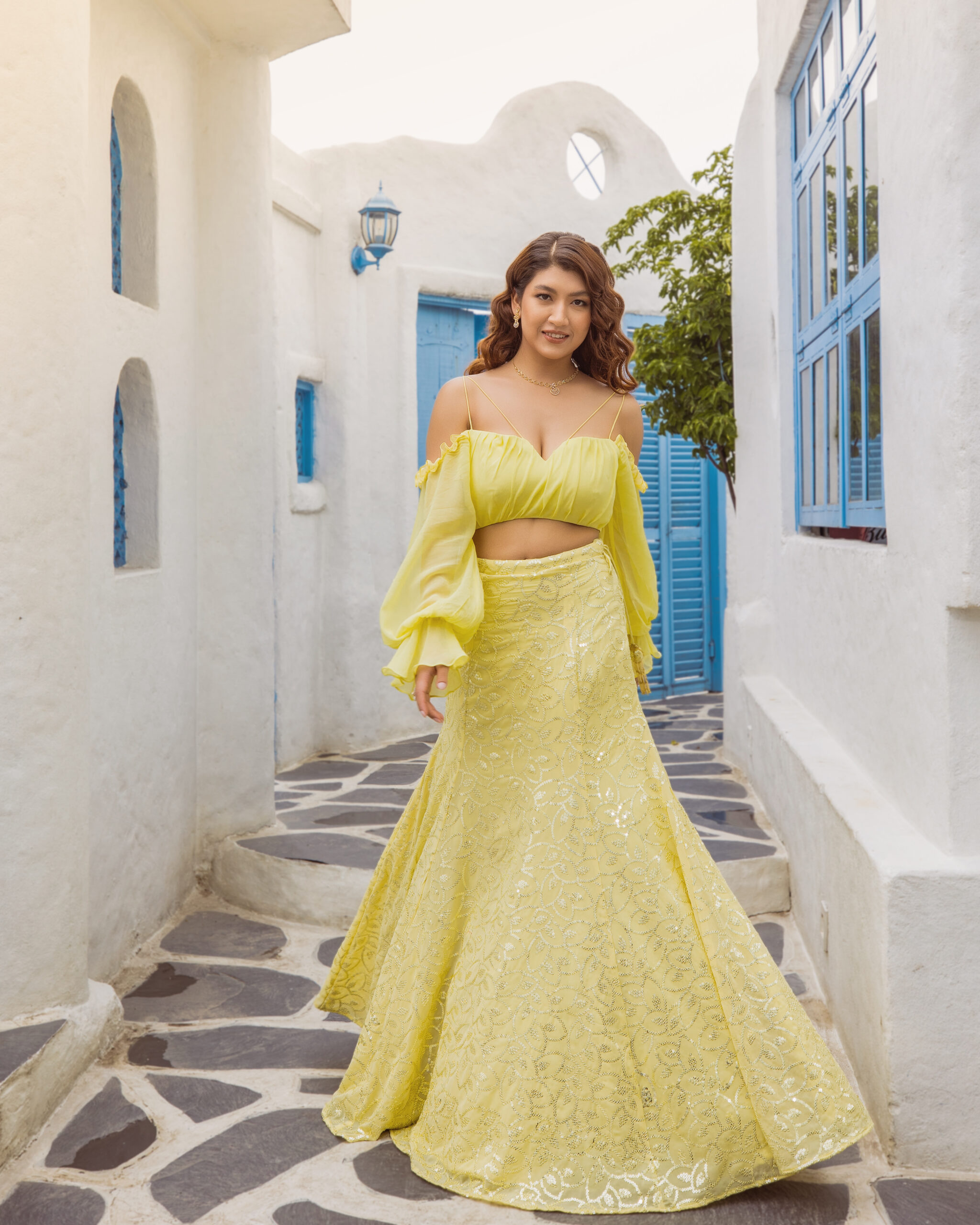 Material: GeorgetteColor: YellowMaking time: 3 weeksShipping time: 7 to 14 working daysONCE THE ORDER IS PLACED YOU WILL RECEIVE THE DETAILS IN YOUR EMAIL.